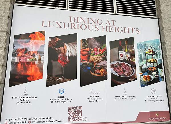 Landmark72 is Hanoi’s tallest building, hosting Sky72 viewing deck experience on its 72nd floor. You can beat the system and save on the admission cost if you stay at InterContinental Landmark72, which occupies a few floors right below the viewing deck. The hotel occupying higher floors (62 through 71) calls for a peculiar check-in situation, where as soon as you arrive in the ground-floor lobby, you’re whisked into an elevator taking you to the 62nd floor, where the actual check-in occurs.