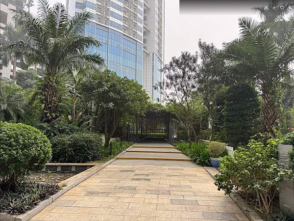 Internal courtyard is shared with the neighboring residential and office towers, and has a public pool as well as small shady garden, that probably comes handy during the summer months.
